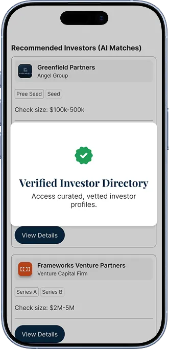 Personalized Investor connections based on your stage, sector and goals.